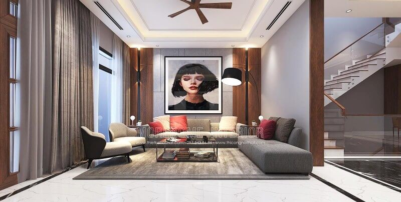 Trang trí nội thất phòng khách hiện đại đẹp cho biệt thự, nhà phố tại Vinh Nghệ An.
