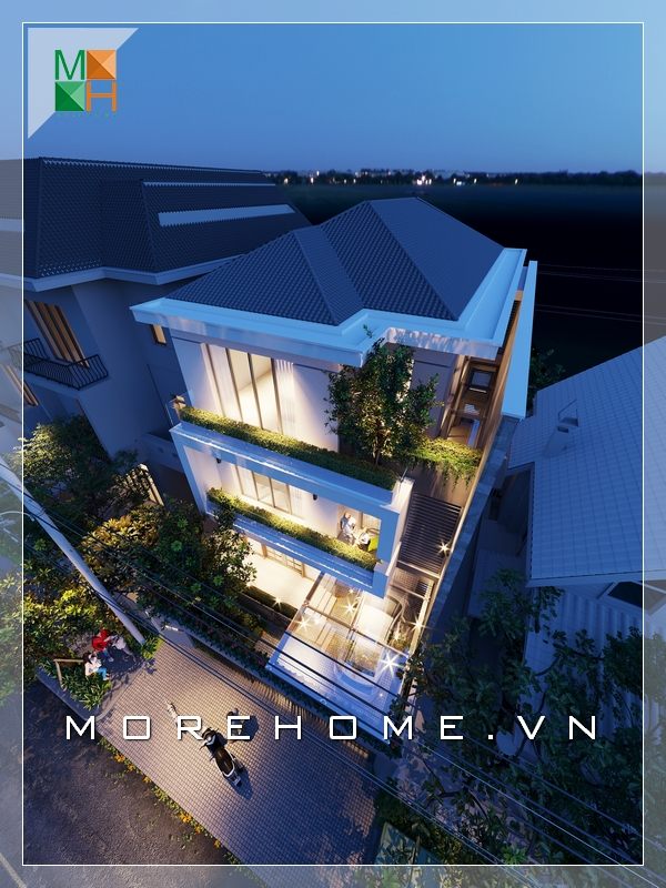 Thiết kế nhà phố sang trọng với sắc trắng trẻ trung, tinh tế trong không gian xanh tươi mát.