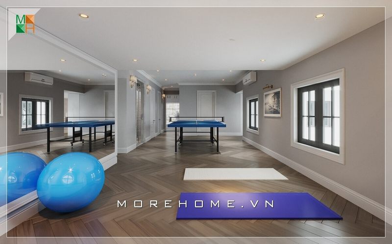 Sở hữu một không gian tập luyện thể dục nâng cao sức khỏe trong thiết kế biệt thự cho cuộc sống thêm hiện đại, tiện nghi.