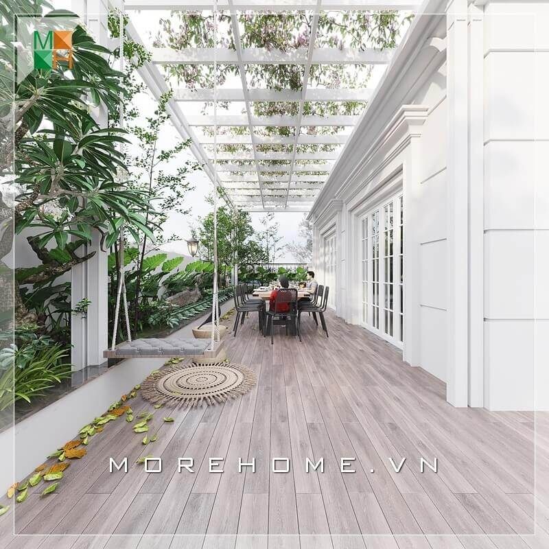 Thiết kế phần sân vườn ngoài trời của biệt thự là khu sinh hoạt, vui chơi thư giãn đầy thoáng đãng dành cho mọi thành viên trong gia đình.