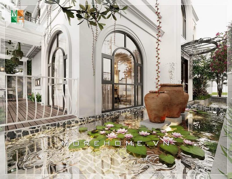 Thiết kế tiểu cảnh sân vườn quanh biệt thự sang trọng và có tính thẩm mỹ cao.