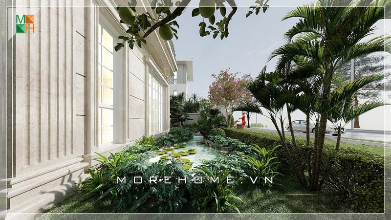 Khuôn viên sân vườn của thiết kế nhà phố, biệt thự được đầu tư đẹp mắt cho một không gian xanh tươi ấn tượng.