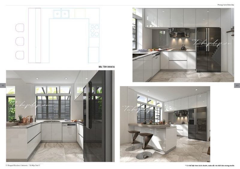 Dành cho các gia chủ đang tìm kiếm mẫu thiết kế nội thất phòng bếp cho biệt thự, nhà phố mang phong cách hiện đại. Sự trẻ trung, thoáng đãng được thể hiện trong cách bố trí tủ bếp gỗ công nghiệp trắng ấn tượng.