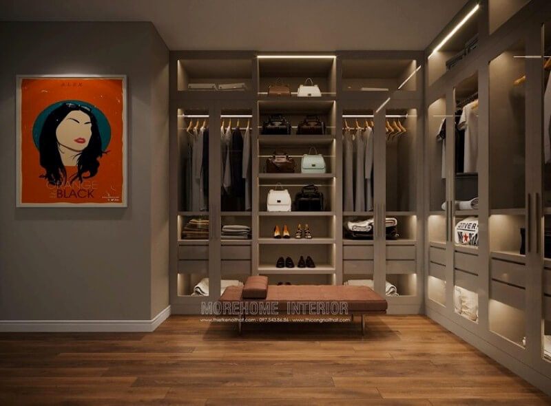 Ấn tượng mẫu thiết kế nội thất phòng thay đồ tân cổ điển dành cho nhà phố, biệt thự rất sang trọng và tiện nghi.